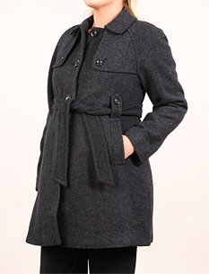 BELTED FRONT SLASH POCKETS BUTTON FRONT WOOL BLEND LONG SLEEVE WOOL MATERNITY COAT DRY CLEAN ONLY IMPORTED